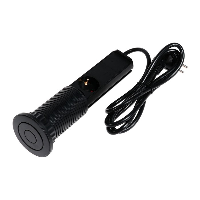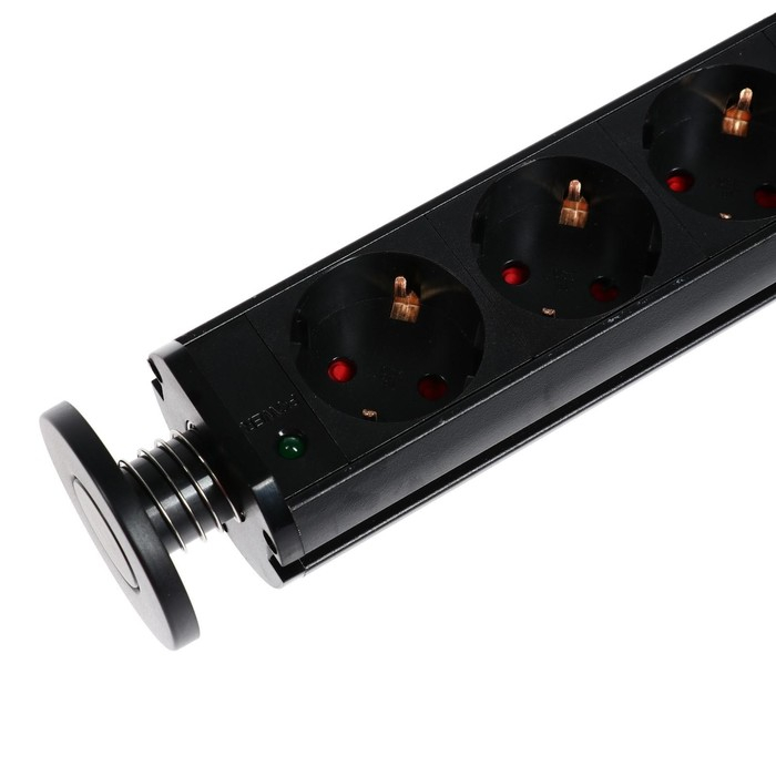 Блок розеточный в стол, сдвижная крышка, 10А, 3 розетки, провод 1.8 м, черный