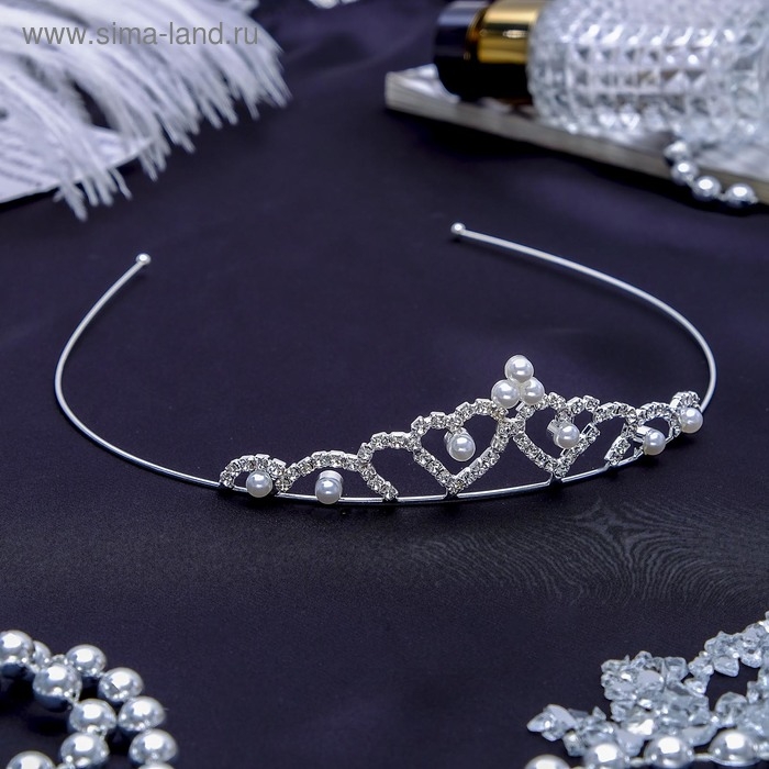 Диадема для волос "Пелагея" сердца, 3 см, серебро