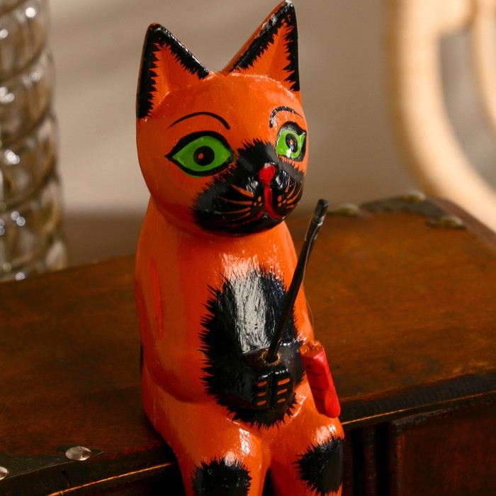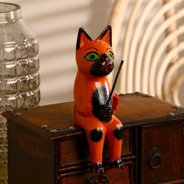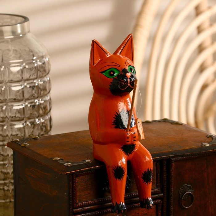 Интерьерный сувенир "Кот рыбак" рыжий 20 см