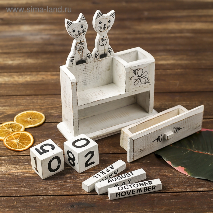 Календарь настольный дерево "Пара кошек" 18х6х22 см