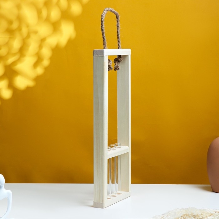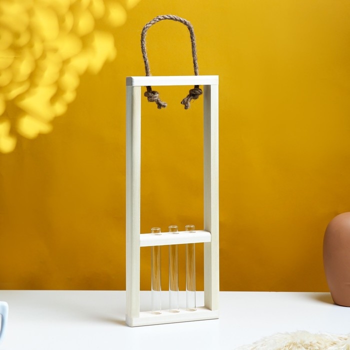 Кашпо деревянное 46×15×4 см с 3 колбами 15 см "Рамка Экстра", ручка Дарим Красиво
