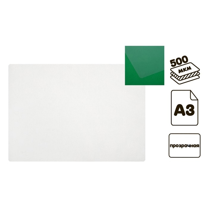 Накладка на стол пластиковая А3, 460 х 330 мм, 500 мкм, прозрачная, бесцветная (подходит для ОФИСА)