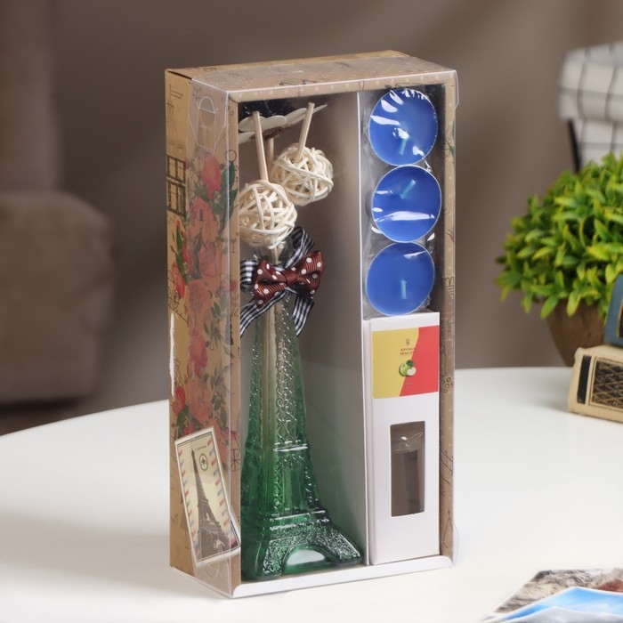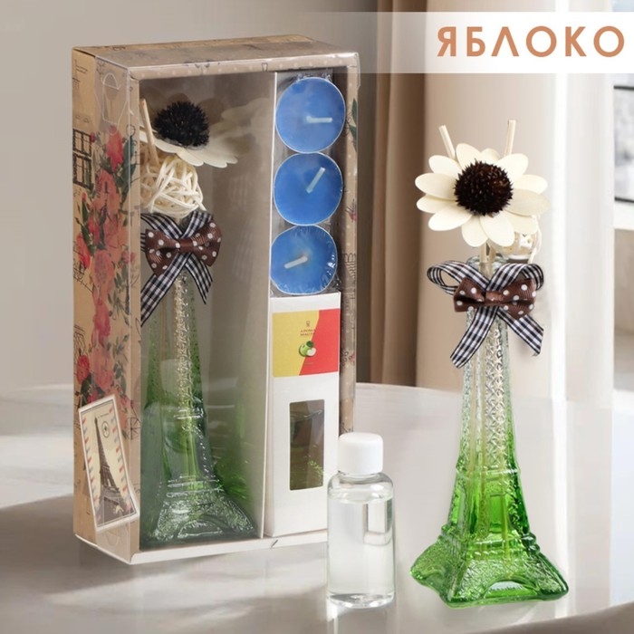 Набор подарочный "Париж" (диффузор и свечи) яблоко, "Богатство Аромата"
