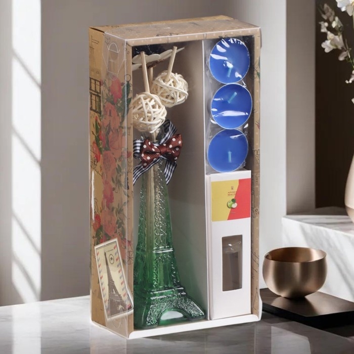 Ощутите волшебство Парижа прямо у себя дома с нашим уникальным набором в стиле Эйфелевой башни. Этот диффузор, выполненный в форме изящного символа Франции, не только наполнит ваш дом уютом, но и придаст ему неповторимый шарм. В комплекте с диффузором вы найдете чайные свечи, создающие приглушенное освещение и добавляющие нотки романтики в атмосферу, а также аромамасло, которое наполнит помещение нежным, умиротворяющим ароматом. Разгрузите свой день и погрузитесь в атмосферу спокойствия и расслабления с нашим набором, который привнесет в вашу жизнь частичку волшебства Парижа.