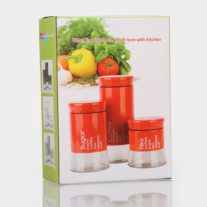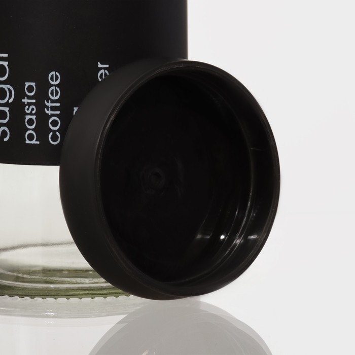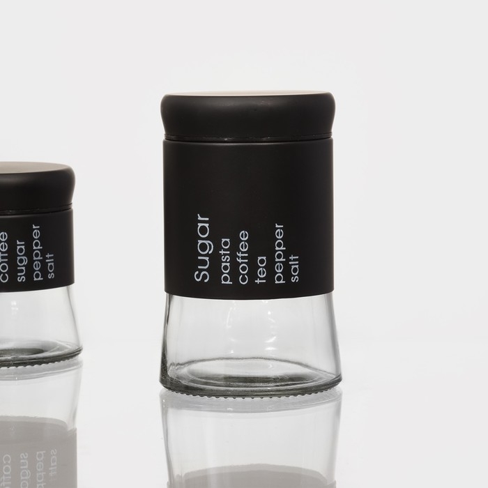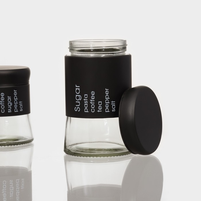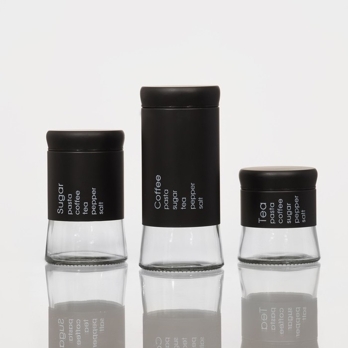 Набор банок стеклянных для сыпучих продуктов «Трио», 3 предмета: 350/550/750 мл, 9,5×10,5/15/19,8 см, цвет чёрный