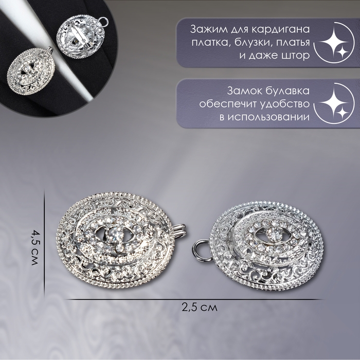 Зажим для кардигана - изысканный аксессуар, в том числе на поверхности платья, шали или свитера, данный элемент можно использовать даже для штор. Зажимы актуальны как в повседневном так и праздничном образе, добавляют очарования вашей одежде при сочетании различных нарядов.