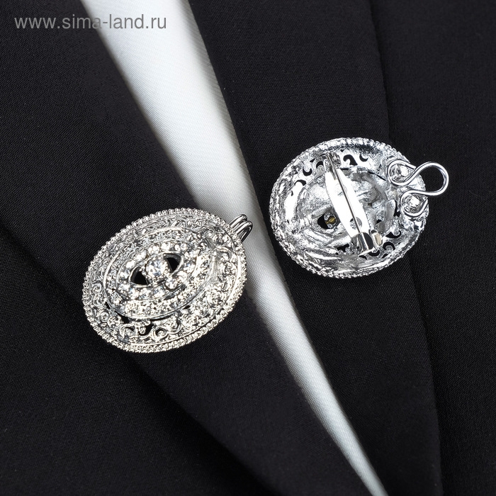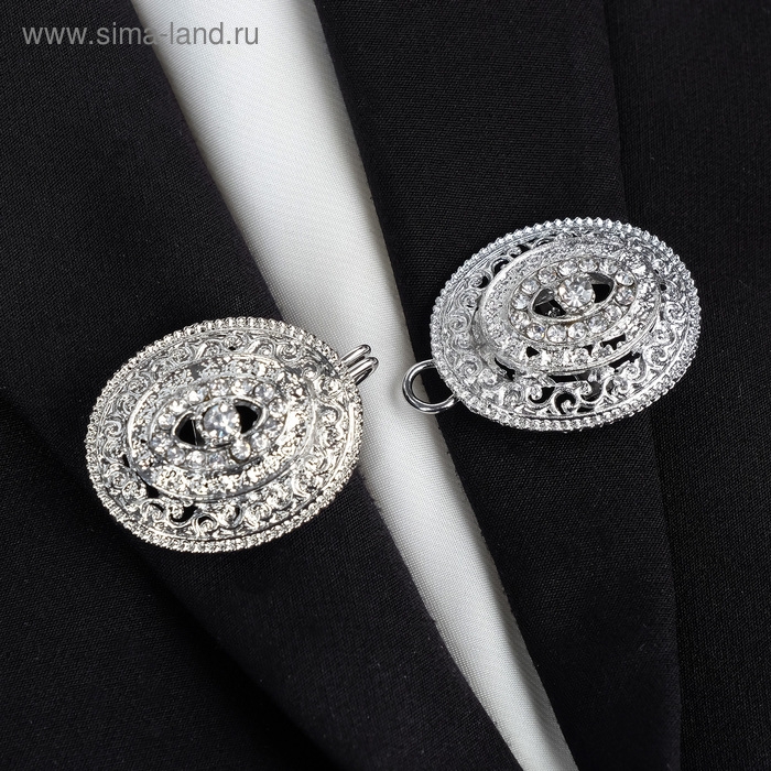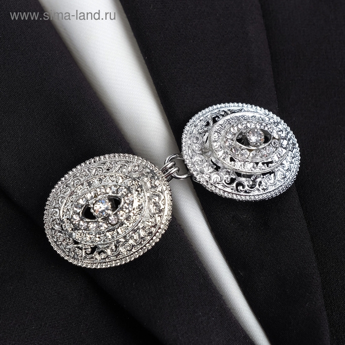 Зажим для кардигана «Эллипс», цвет белый в серебре