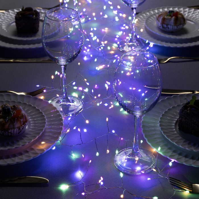 Гирлянда «Мишура» 6 м роса, IP20, серебристая нить, 480 LED, свечение мульти, 12 В