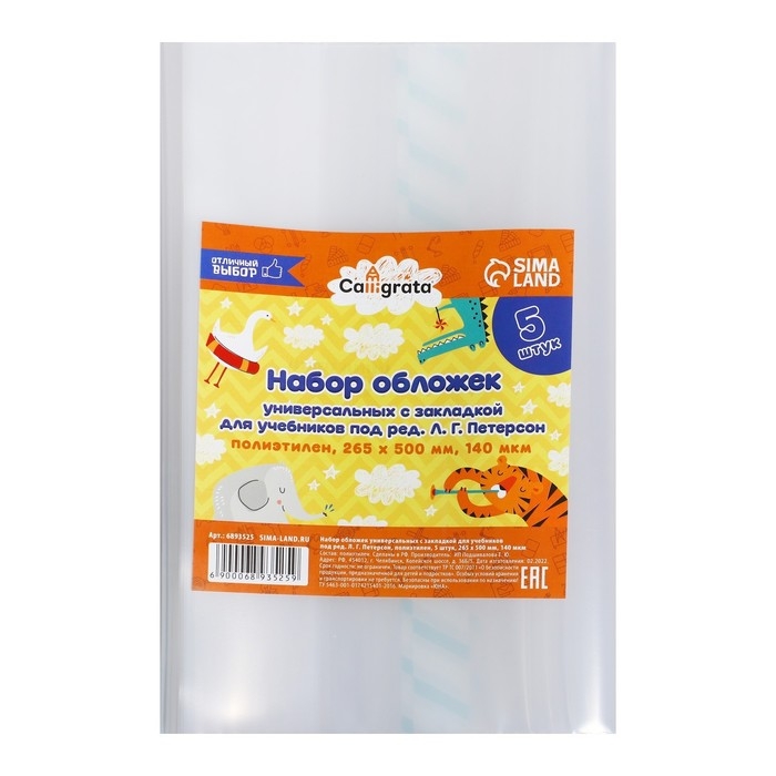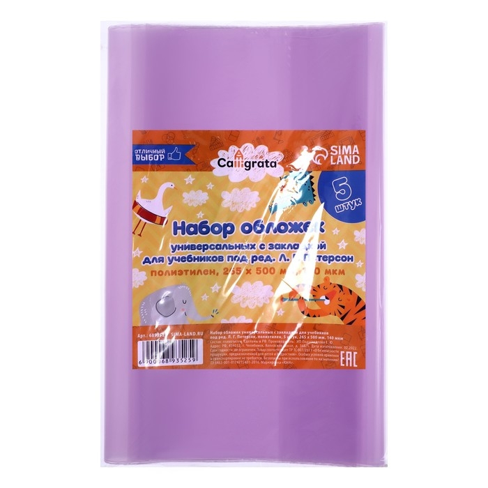 Набор обложек ПЭ 5 штук, 265 х 500 мм, 140 мкм, для учебника Петерсон, универсальная, с закладкой, МИКС