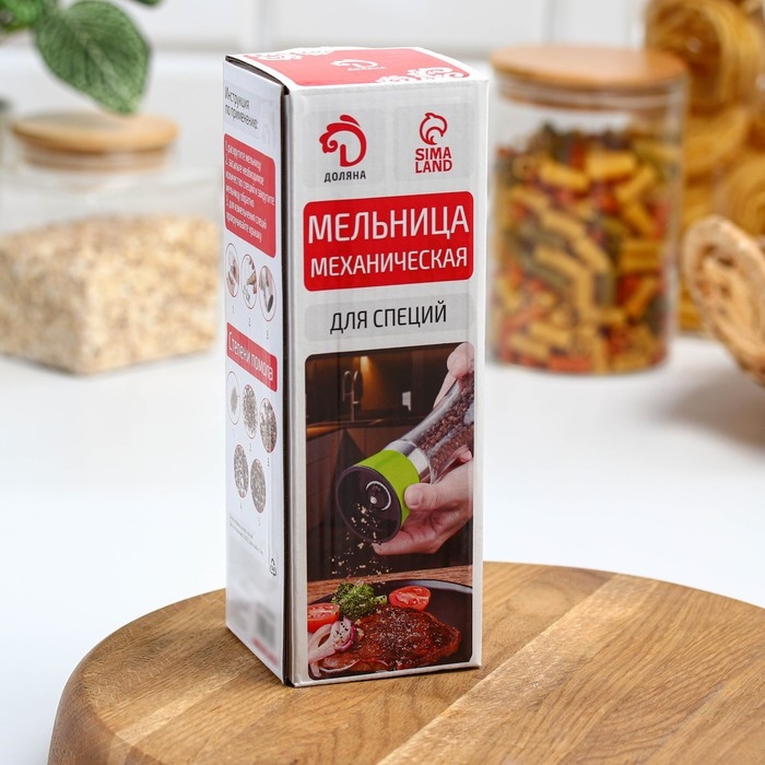 Мельница для специй «Модерн» от Доляна — это идеальное решение для тех, кто хочет быстро и удобно измельчать специи перед приготовлением любимых блюд. Эта стильная и функциональная мельница изготовлена из высокопрочного стекла и нержавеющей стали, что обеспечивает долгий срок ее службы и сохранение вкусовых качеств измельчаемых специй.