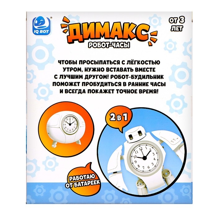 Робот-будильник «Димакс» — это игрушка 2 в 1. За несколько движений вы превратите робота в будильник и обратно! Устройство поможет ребёнку в изучении цифр, времени и освоении других полезных навыков.
