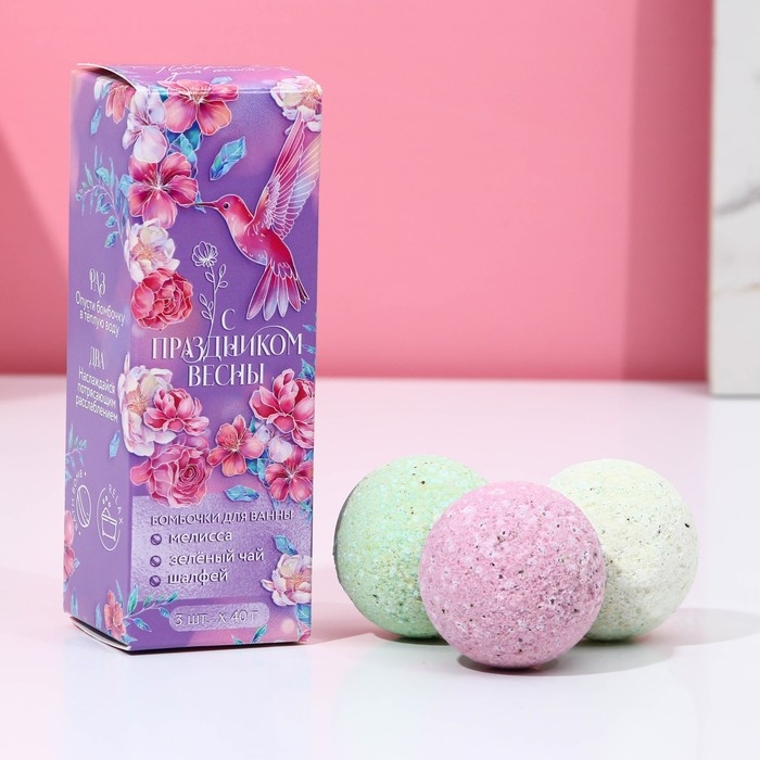 Набор бомбочки для ванны с добавками ЧИСТОЕ СЧАСТЬЕ «С 8 Марта», 3х40 г