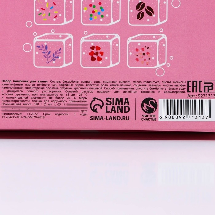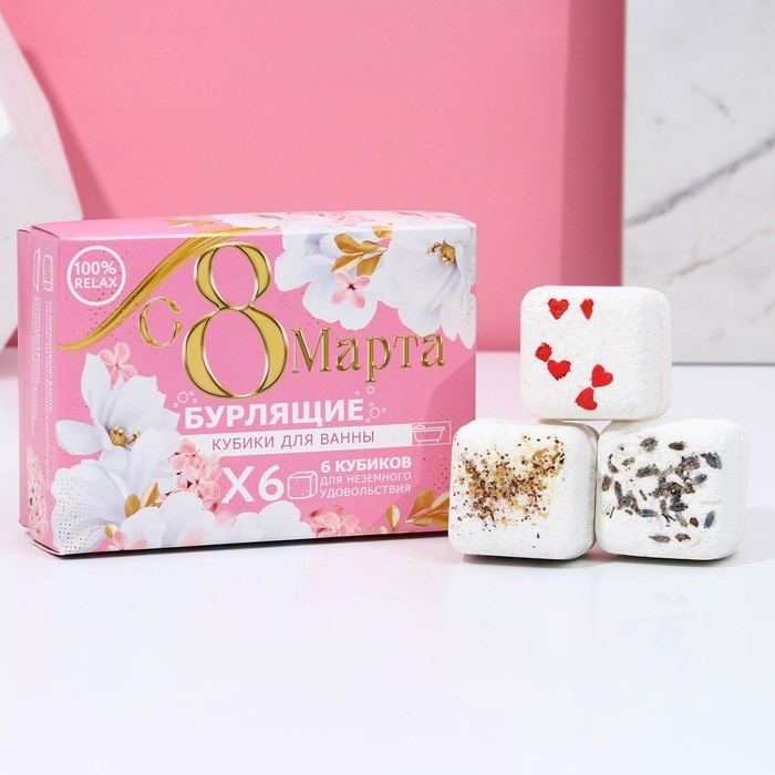 Подарочный набор косметки «С 8 Марта!», бомбочки для ванны с добавками 6 х 65 г, ЧИСТОЕ СЧАСТЬЕ