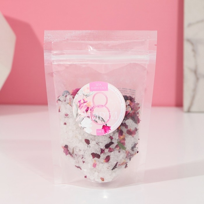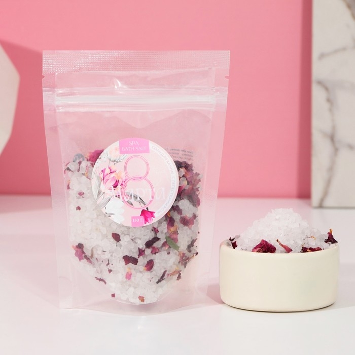 Соль для ванны «С праздником 8 марта», с лепестками розы, 150г