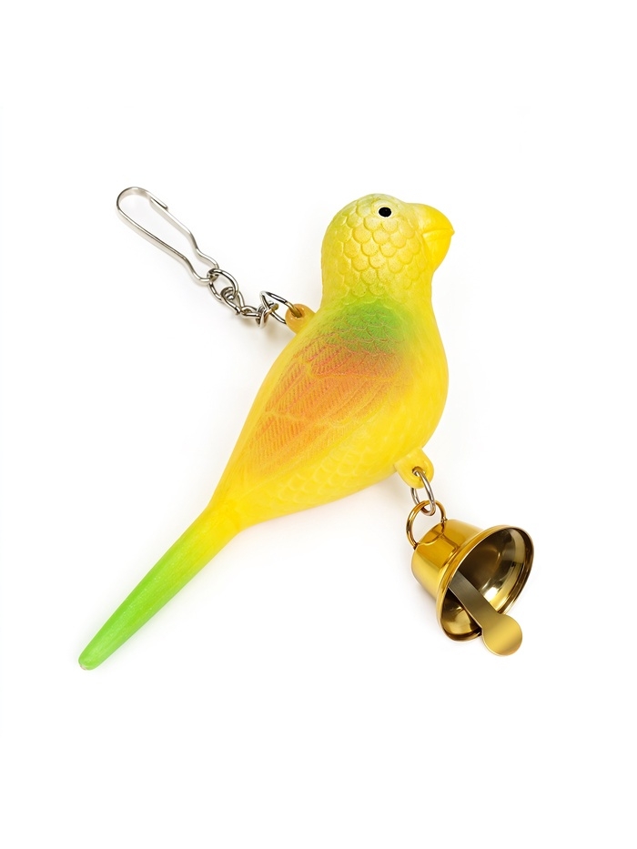 Игрушка в виде птички станет прекрасным компаньоном вашему питомцу, помогая избавиться от одиночества. Колокольчик на игрушке добавляет звуковой эффект и привлекает внимание птицы, создавая веселую атмосферу в клетке. "Птичка" с колокольчиком отлично крепится на клетку благодаря надежному креплению.