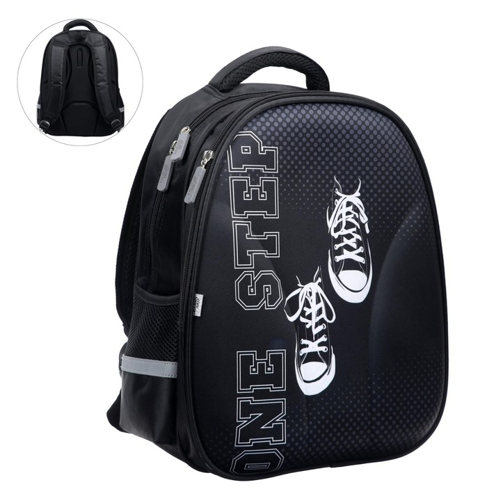 Формованная спинка устойчива к деформации, создана с учетом анатомического строения спины ребенка, имеет вентиляционные каналы для свободной циркуляции воздуха.Эргономичная вентилируемая спинка, широкие регулируемые лямки обеспечивают плотную фиксацию и равномерное распределение нагрузки на позвоночник, а усиленное дно, плотная ручка и петля для подвешивания делают рюкзак максимально удобным.