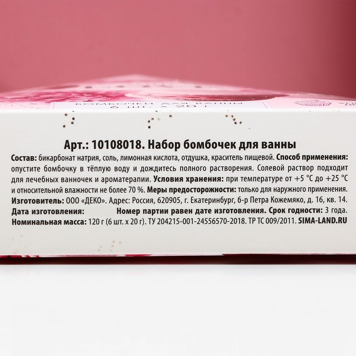 Набор бомбочки для ванны ЧИСТОЕ СЧАСТЬЕ «С 8 Марта», 6х20 г