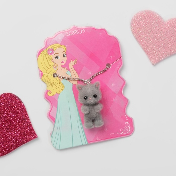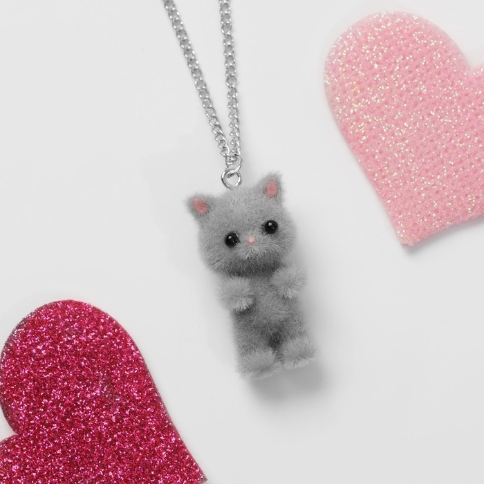 Кулон детский «Выбражулька» котёнок, цвет серый в серебре