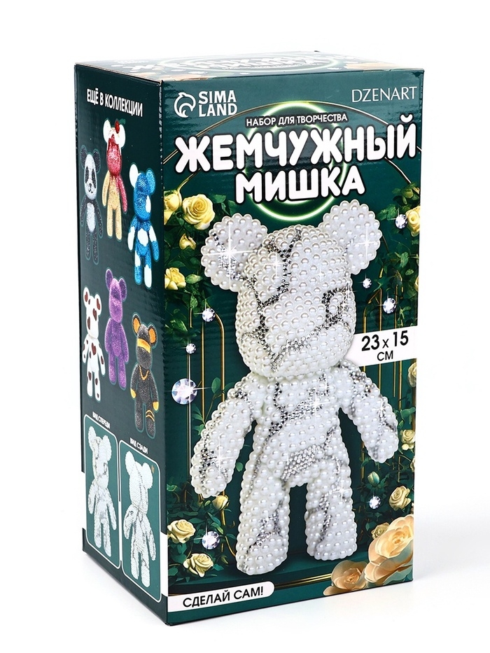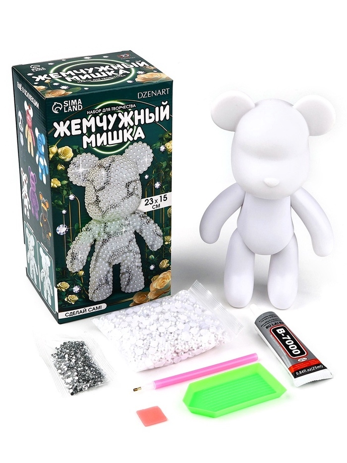 Алмазная мозаика на фигурке с полным заполнением «Жемчужный мишка стразами», белый