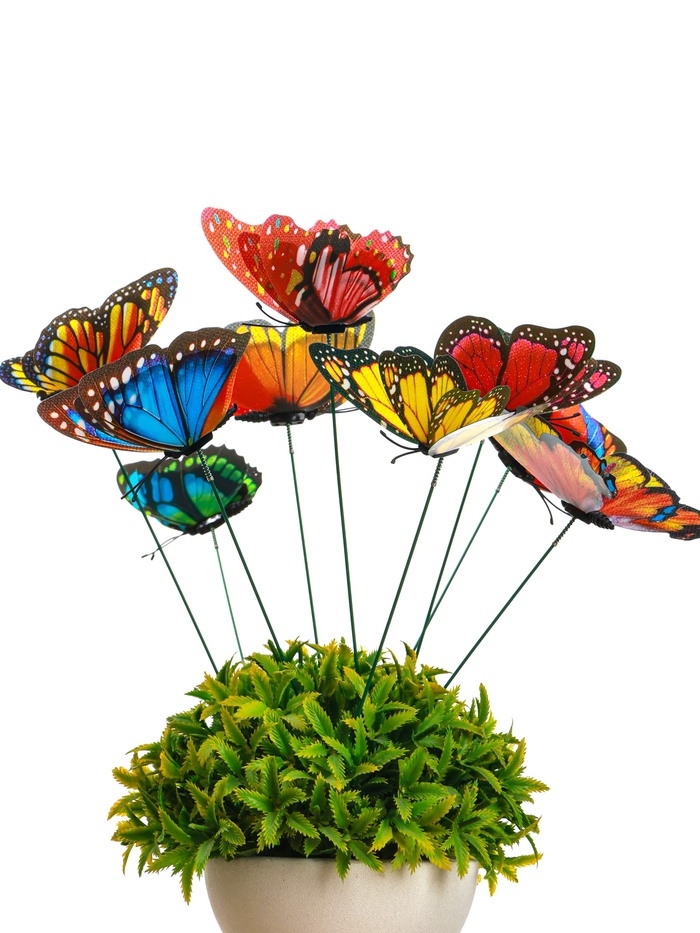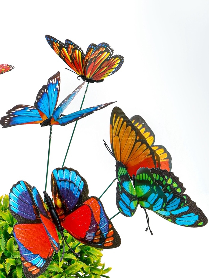 Набор штекеров "Бабочки двойные с блестками" в наборе 15шт, 10см