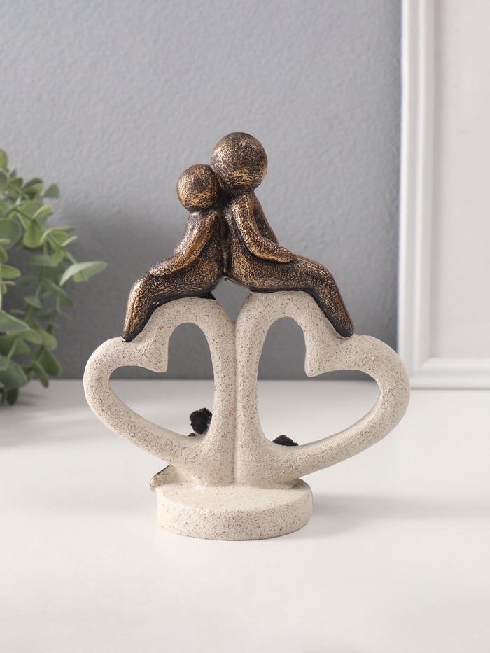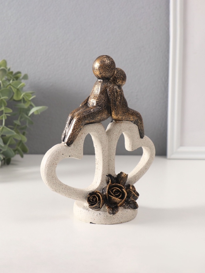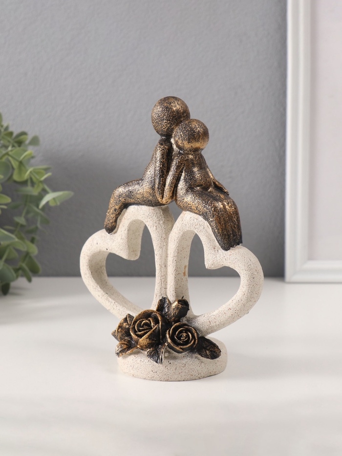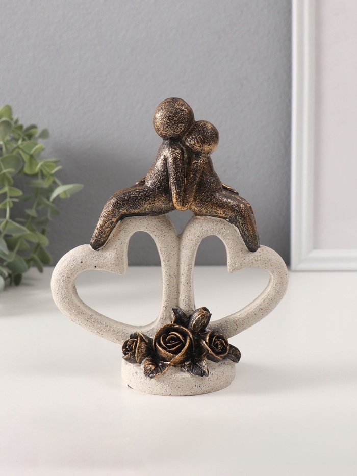 Сувенир полистоун "Пара на каменных сердцах с розами" под бронзу 7,5х15,3х18 см