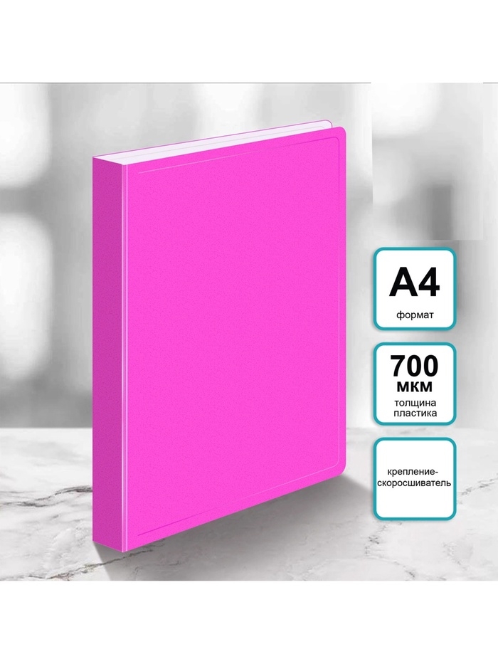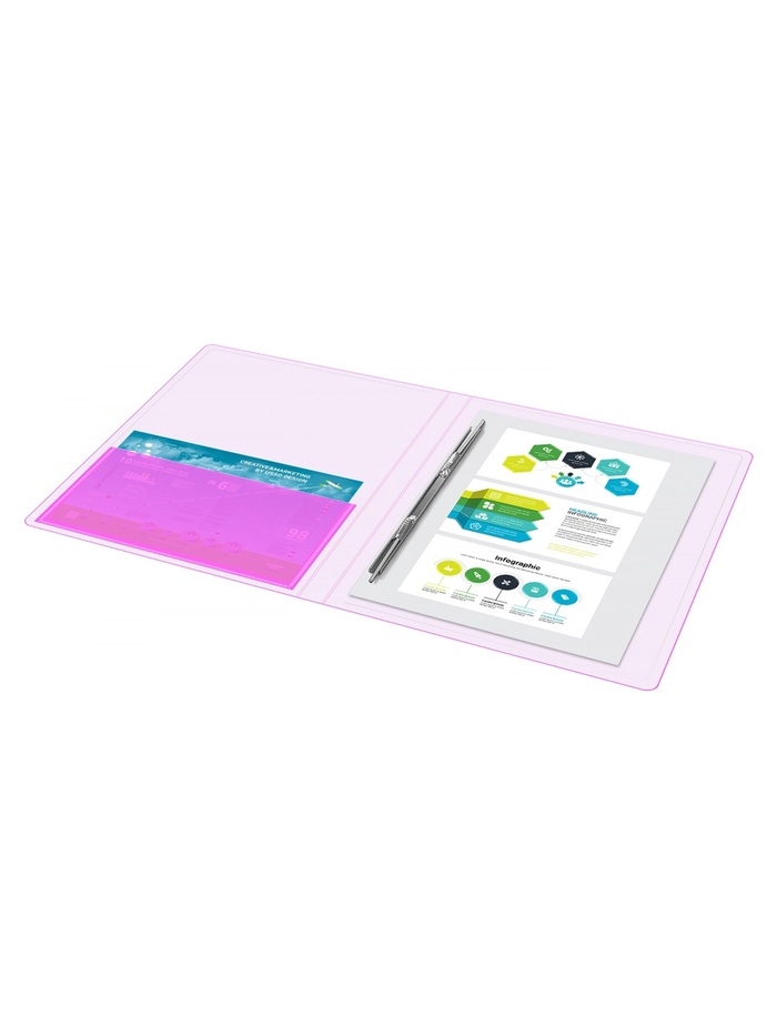 Папка с пружинным скоросшивателем А4, 700 мкм, 27 мм, Calligrata Double Neon, внутренний карман, до 180 листов, фуксия
