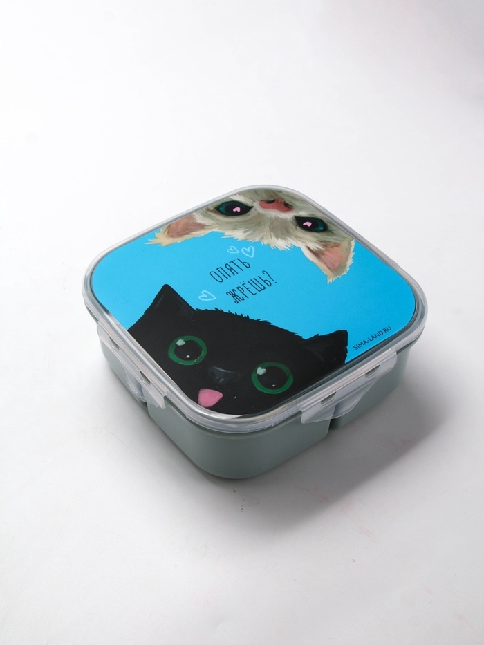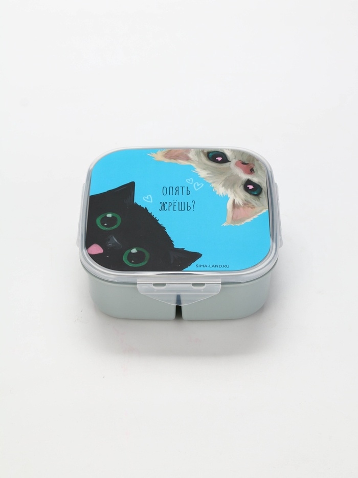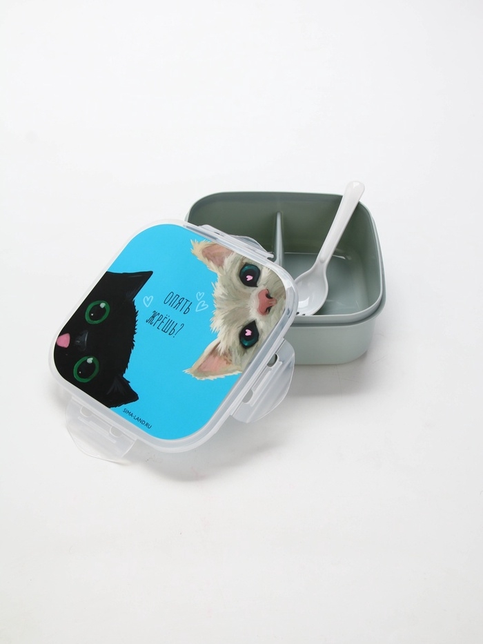 Ланч - бокс с секциями и ложкой «Коты», 17,8 х 17,8 х 7 см