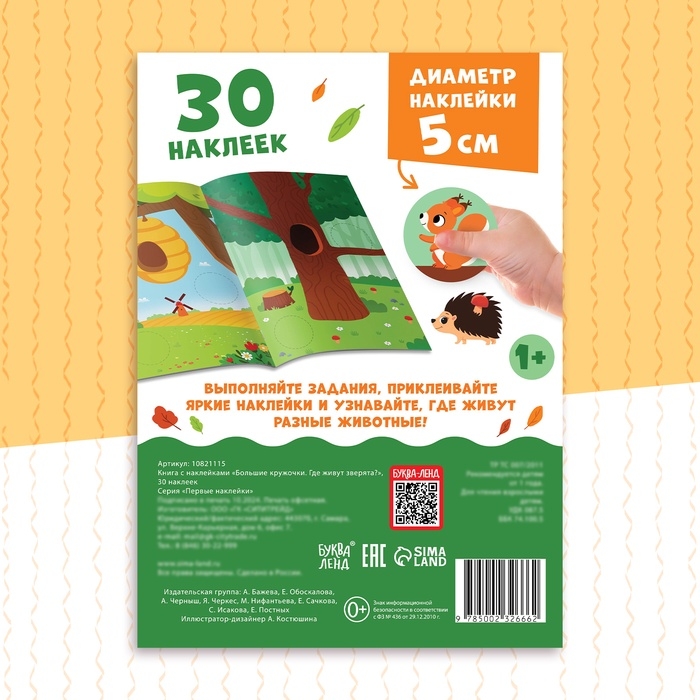 Книжка с наклейками «Большие кружочки. Где живут зверята?», 30 стикеров