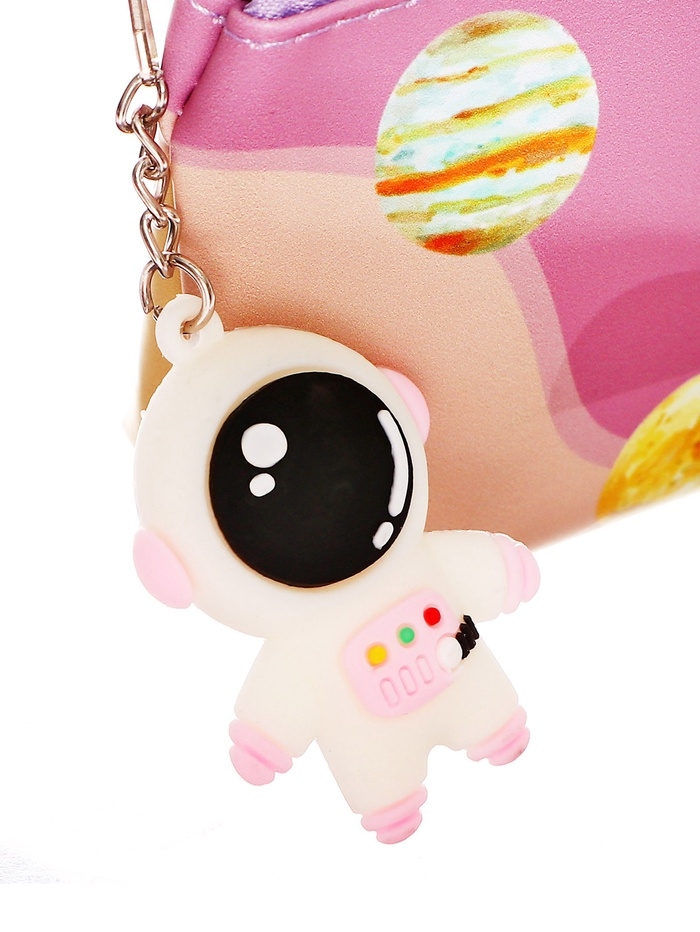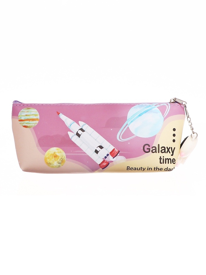 Пенал школьный на молнии Ракета Розовый, с подвеской