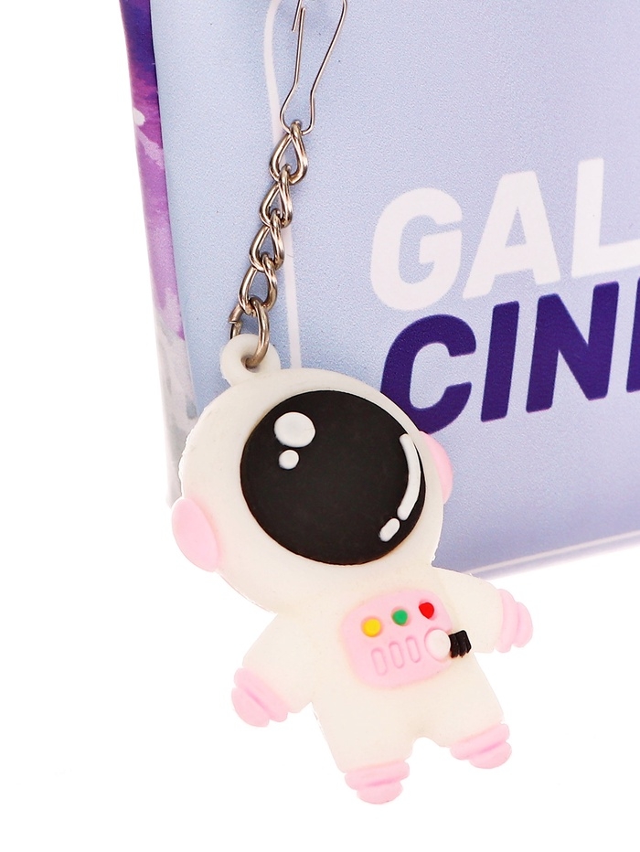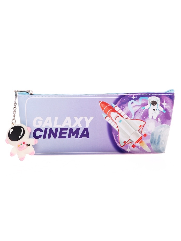 Пенал школьный на молнии Ракета Сиреневый, с подвеской