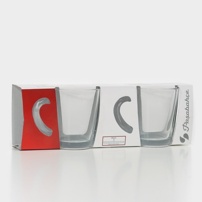 Кружки Paşabahçe Basic, 340 мл, стекло, для чая и кофе, с ручкой, прозрачные, набор 2 шт