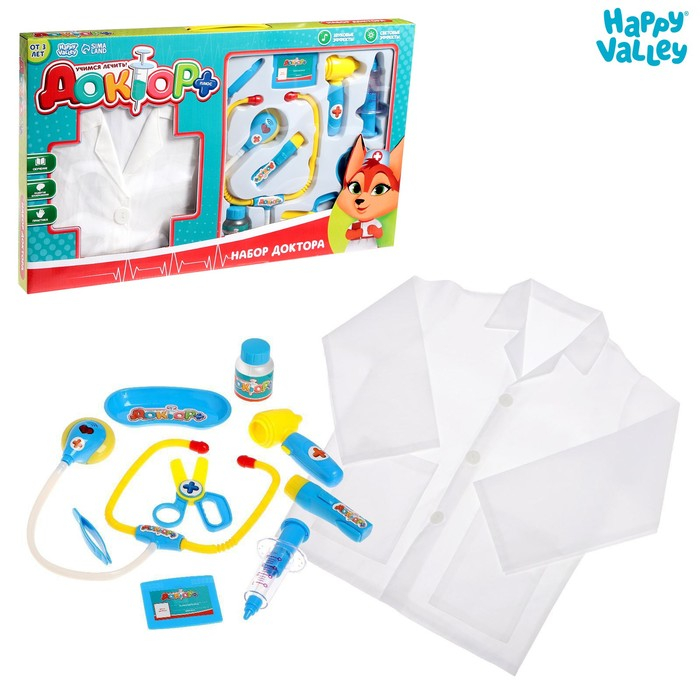 Набор доктора, 10 предметов с халатом, свет и звук