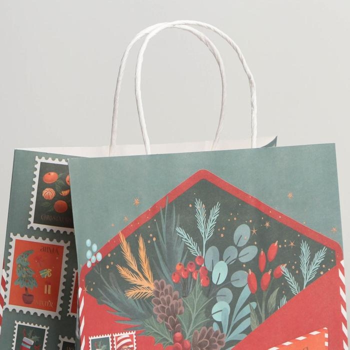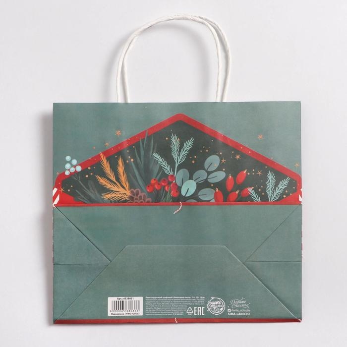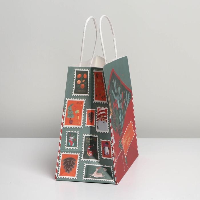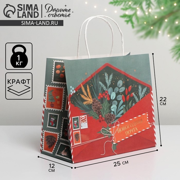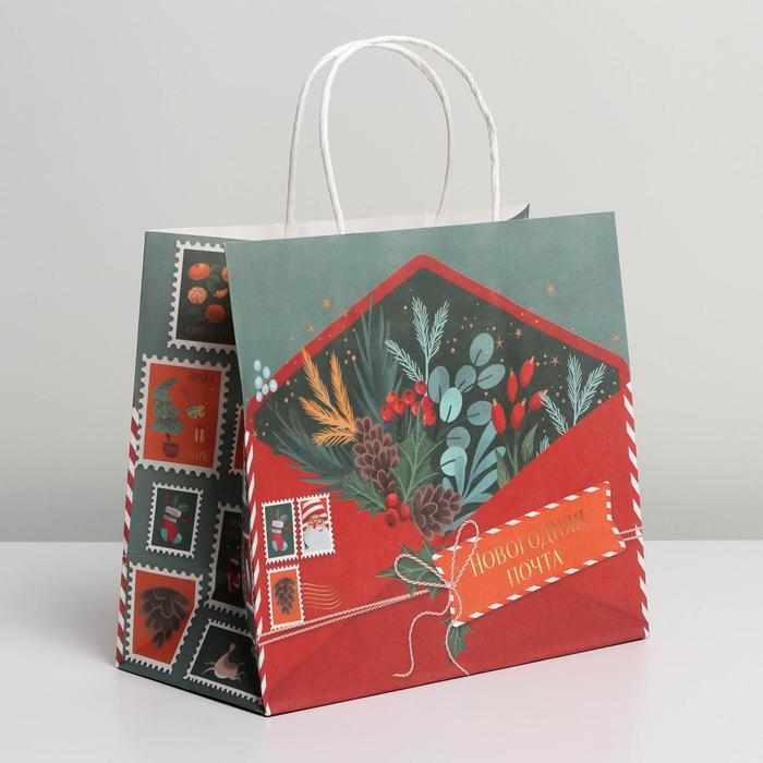 Пакет подарочный новогодний крафтовый «Новогодняя почта», 25 х 22 х 12 см
