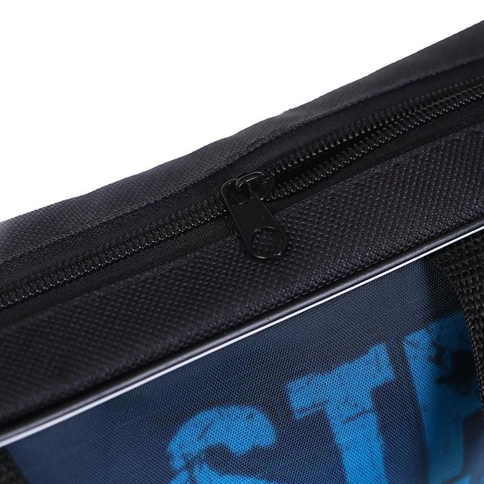 Папка текстильная на молнии с ручками, формат A4+. Размер 270 х 70 х 350 мм. Материал: износо-морозостойкий водоотталкивающий 100% полиэстер. Предназначена для транспортировки учебных принадлежностей, документов и различных аксессуаров. Имеет одно большое отделение с расширением и карманом внутри, застежка на молнии с мягким ходом. Для комфортной переноски ручки папки выполнены из прочной стропы