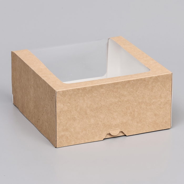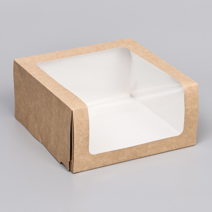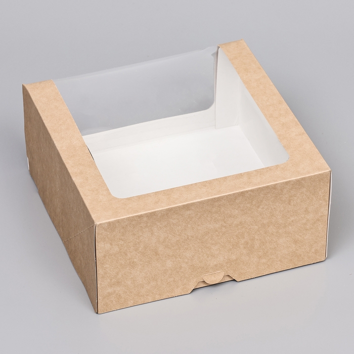 Кондитерская упаковка с окном, крафт, 21 х 21 х 10 см