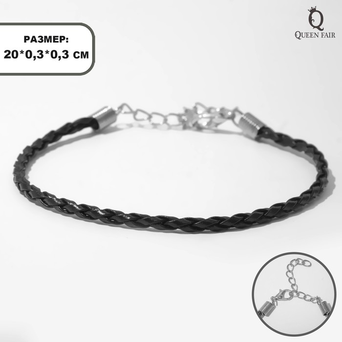 Шнур вощёный кожаный, L=20см. с удлинителем, цвет чёрный