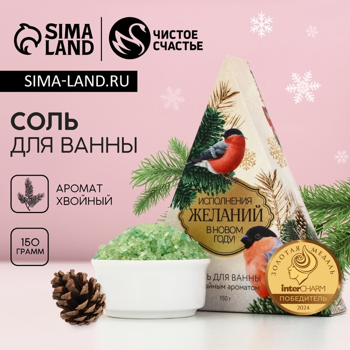 Соль для ванны ЧИСТОЕ СЧАСТЬЕ «Исполнения желаний!», 150 г, аромат хвойный, Новый Год
