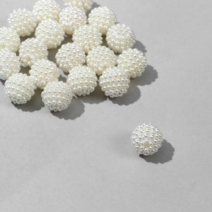 Бусины пластиковые «Жемчуг», шарик, d=1 см, набор 10 г, белые