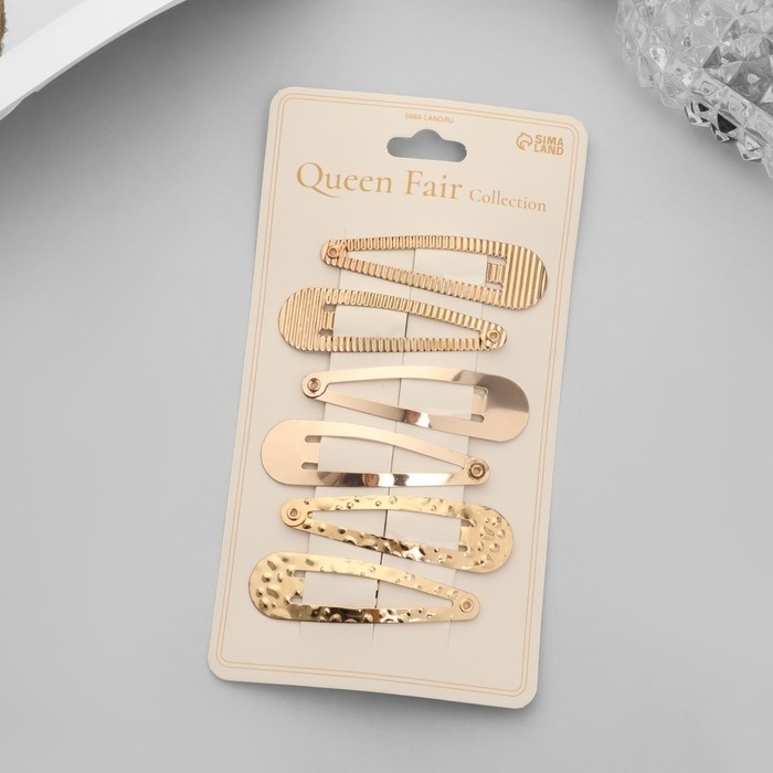 Невидимка для волос "Ажурная" (набор 6 шт) ассорти, 5 см, золото