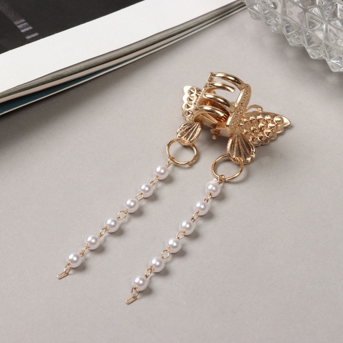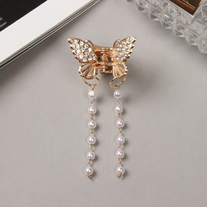 Краб для волос "Милада" бусы, 2,5 см, золото
