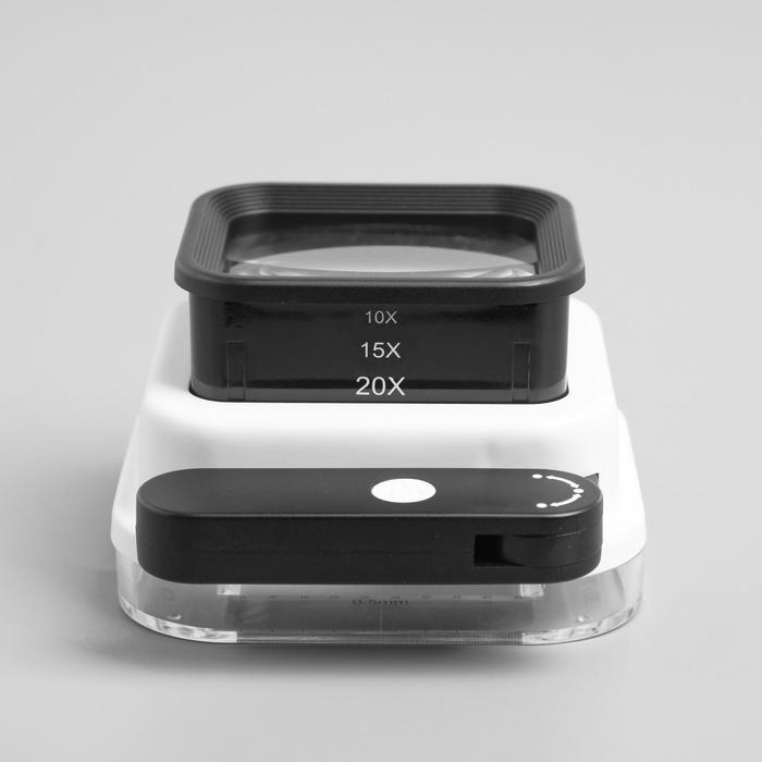 Лупа раскладная 10х, 15х, 20х, подсветка ультрафиолет