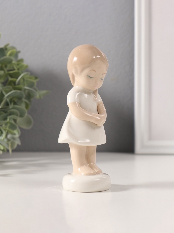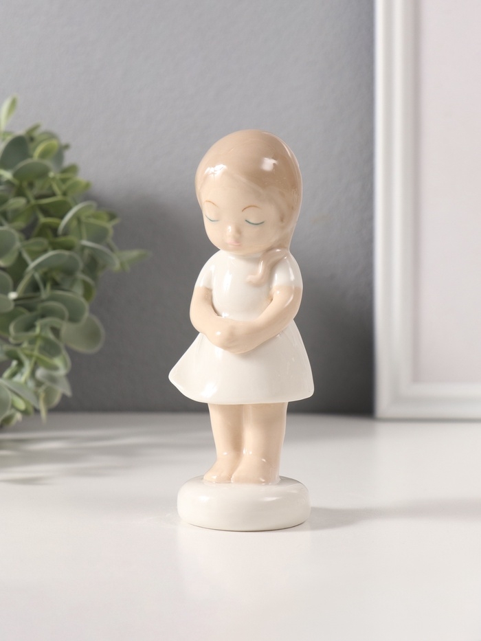Сувенир керамика "Малышка скромница в белом платьице" 4х5х12 см