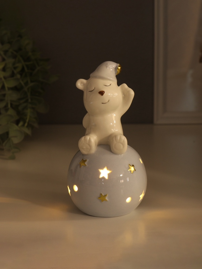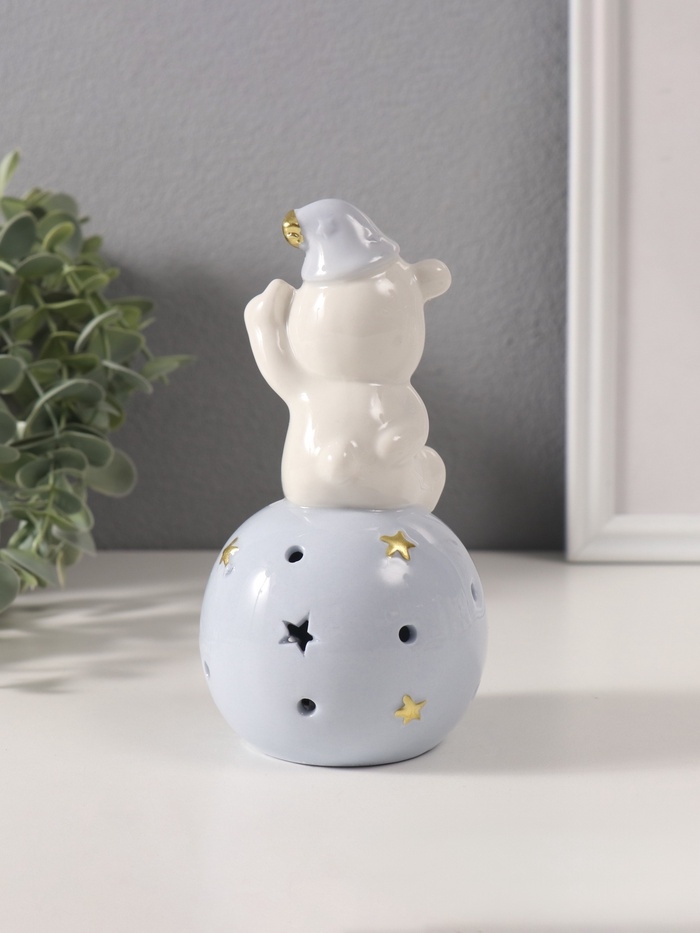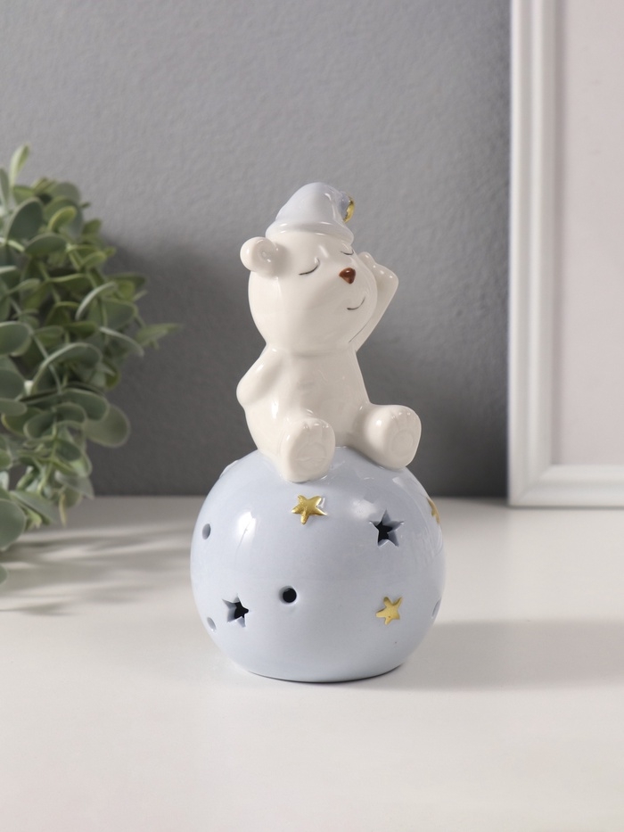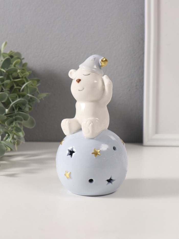 Сувенир керамика свет "Медвежонок в голубом колпаке на шаре со звёздами" 8х8х15 см