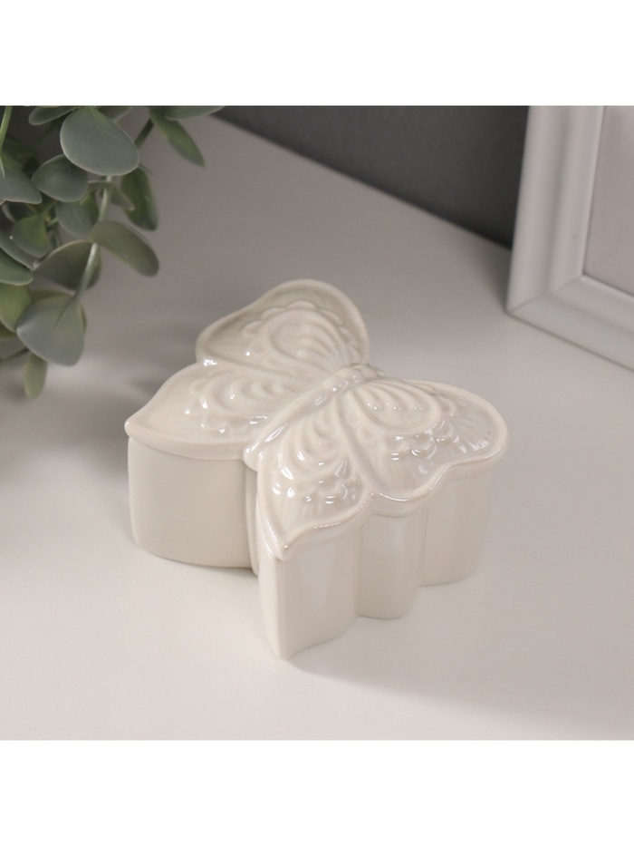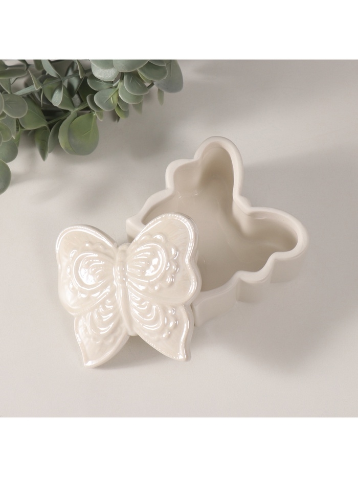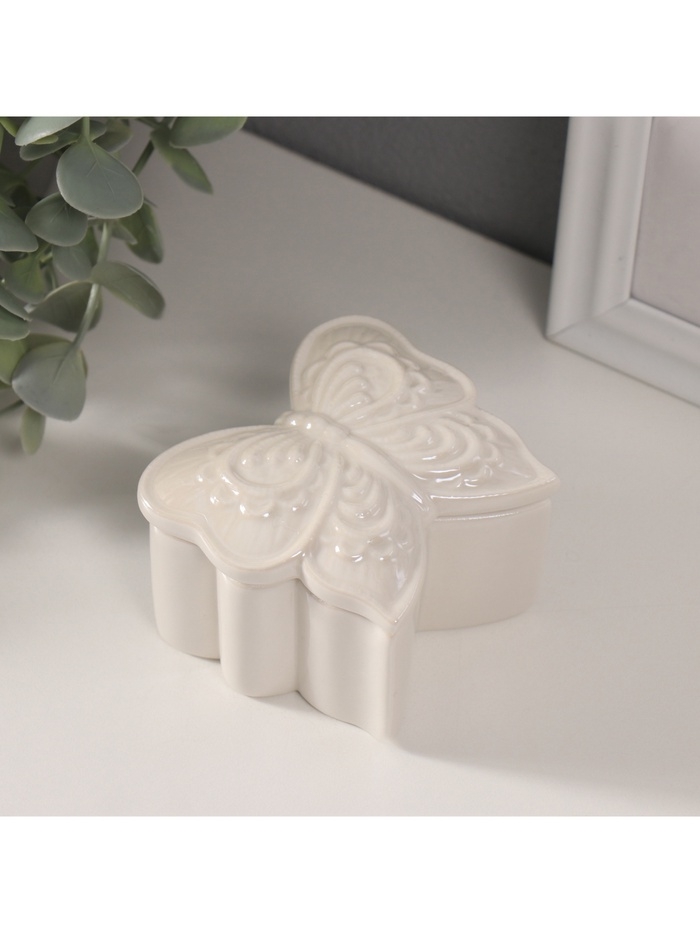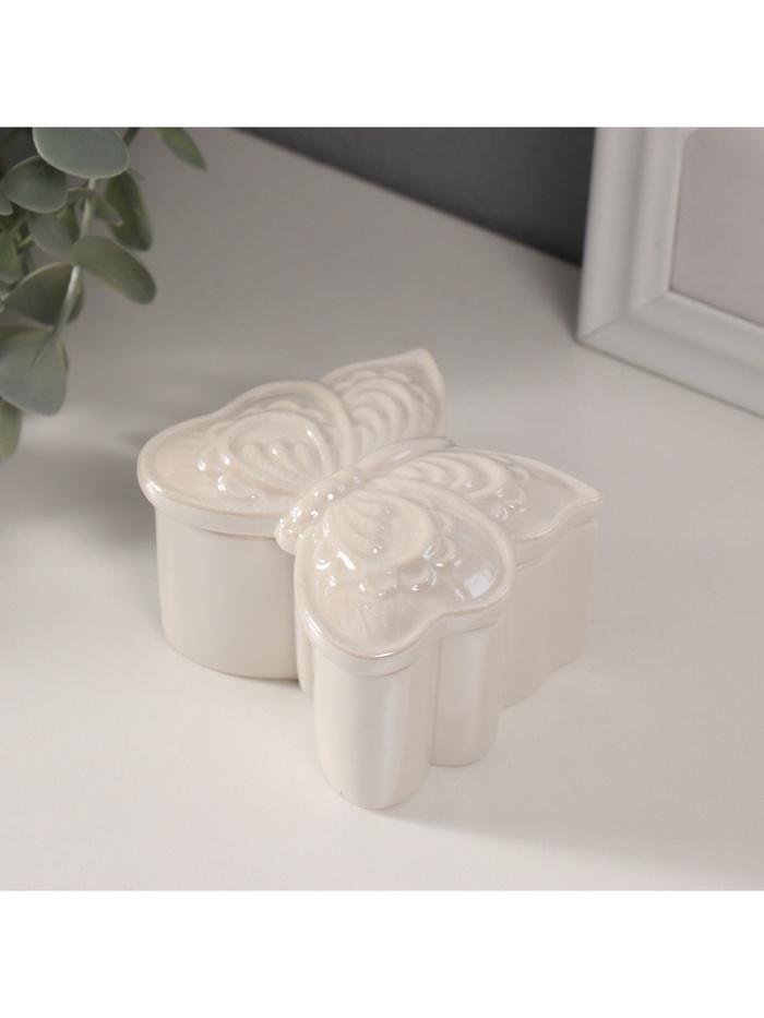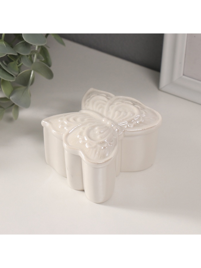 Шкатулка керамика "Бобочка фигурная" белый перламутр 7,3х7,3х4,5 см