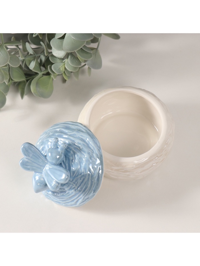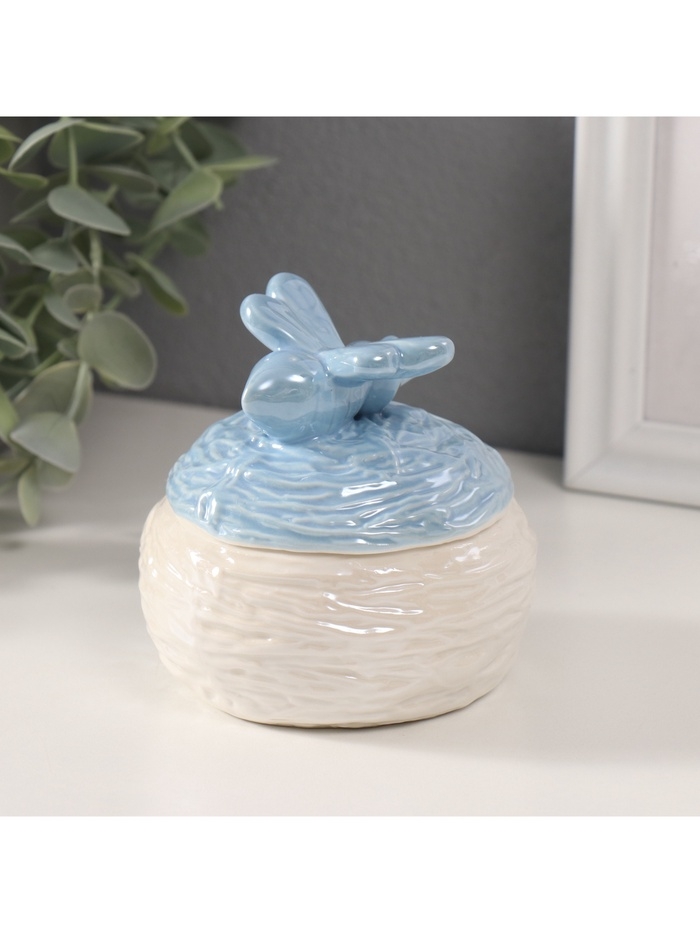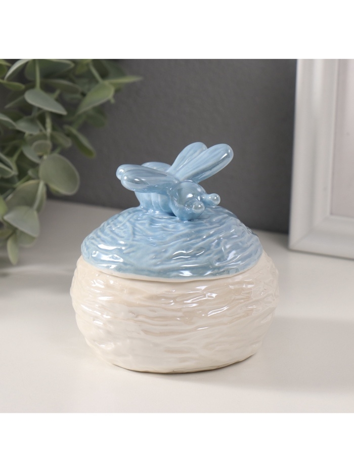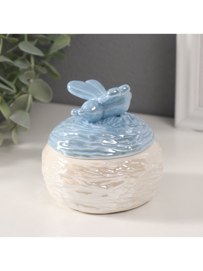 Шкатулка керамика "Пчёлка на улье" голубой перламутр 8,5х8,5х8 см