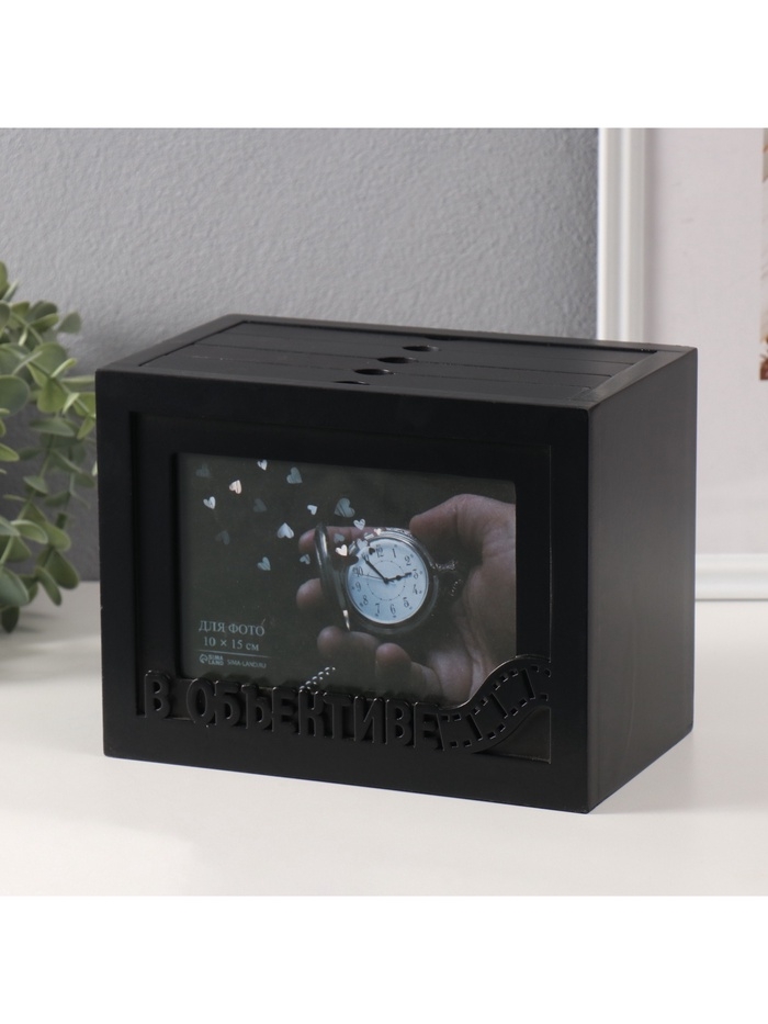 Фотоархив на 96 фото 10х15 см + рамка 10х15 см "В объективе" черный 20х15х12 см