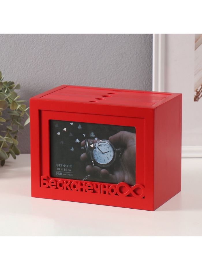 Фотоархив на 96 фото 10х15 см + рамка 10х15 см "Бесконечно" красный 20х15х12 см