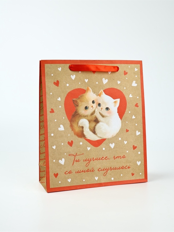 Пакет подарочный крафтовый «Люблю тебя», M 25,5 × 9 × 30 см