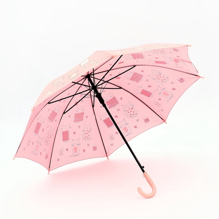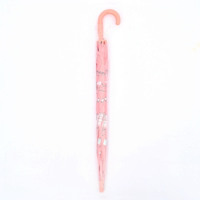 Зонт-трость детский п/авт R49/55 П/Э КОТИКИ ручка-крюк МИКС пакет