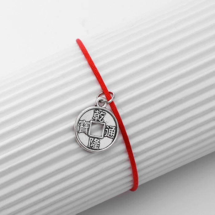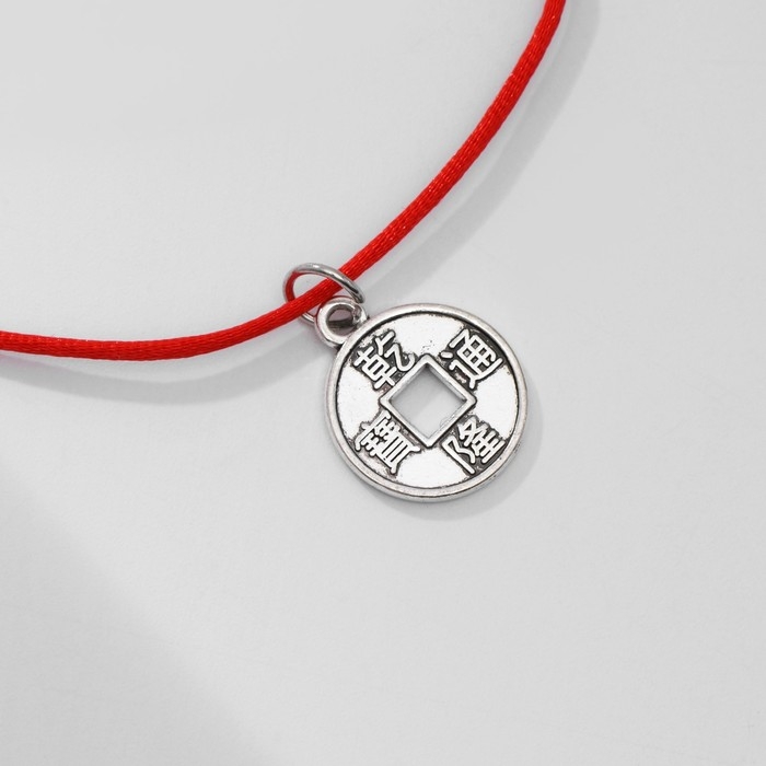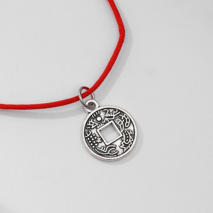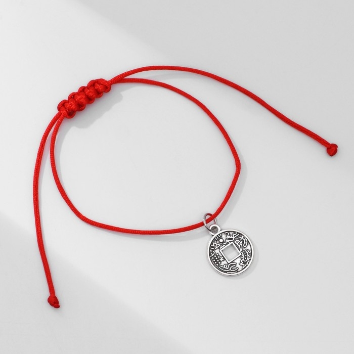Браслет-оберег «Красная нить» денежная, цвет чернёное серебро, d=8 см